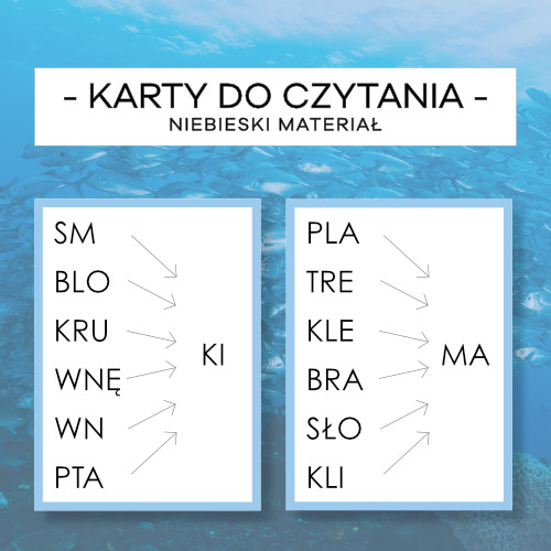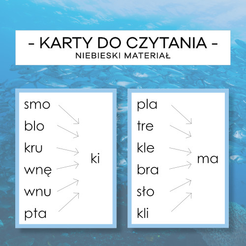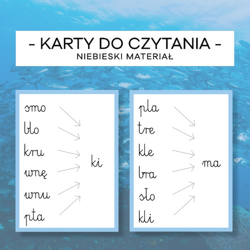 Karty do czytania – Niebieski Materiał cz. 3 – pisany, mały i wielki druk