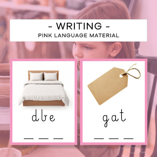 Różowy Materiał – Rozsypanka literowa- krótkie wyrazy – Montessori Pink Language Series – Set C-V-C WORDS: