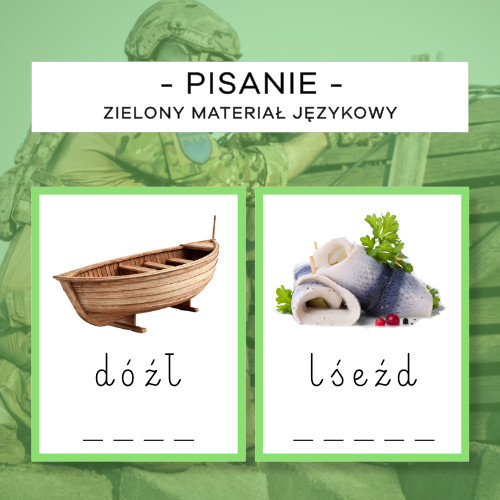 Zielony Materiał – Rozsypanka literowa – wyrazy z głoską dz, dzi, dż, dź
