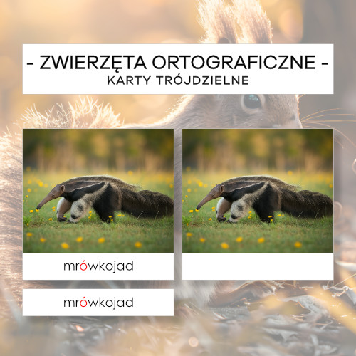 Karty trójdzielne Montessori ze zwierzętami ortograficznymi do wprowadzenia nowych pojęć oraz do zwiększenia, wzbogacania i poszerzania słownictwa wg lekcji trójstopniowej Montessori.