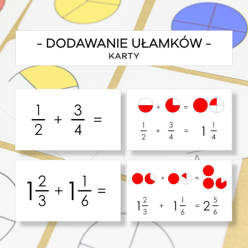 Dodawanie ułamków zwykłych, o różnych mianownikach, powyżej 1 cz. 3 – karty