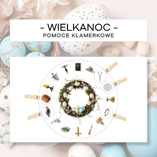 Pakiet zawiera 2 okrągłe plansze z obrazkami i 32 obrazki w kółeczkach do wycięcia i dopasowania.