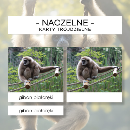 Karty trójdzielne Montessori z małpami naczelnymi do wprowadzenia nowych pojęć oraz do zwiększenia, wzbogacania i poszerzania słownictwa wg lekcji trójstopniowej Montessori.